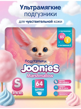 Представляем вам самые современные ультрамягкие подгузники, разработанные с использованием передовых технологий и уникальных дышащих материалов. Подгузники Joonies Marshmallow обеспечат вашему малышу невероятный комфорт, максимальную защиту и безопасность.