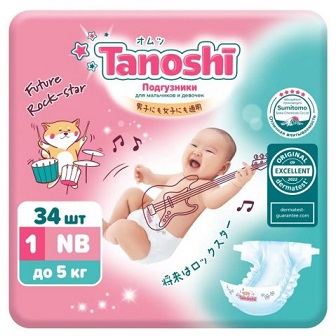 Tanoshi Подгузники NB (0-5 кг), 34 шт