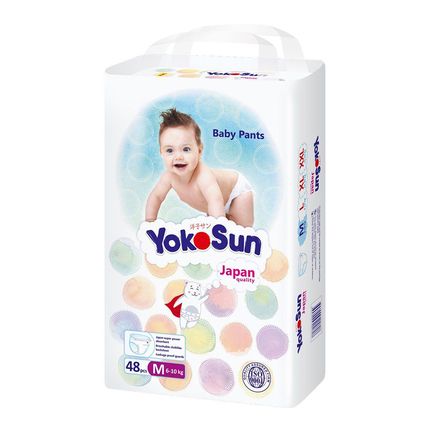 Подгузники-трусики YokoSun изготовлены из мягчайших материалов, тонкие и дышащие, впитывают влагу и удерживают ее внутри.